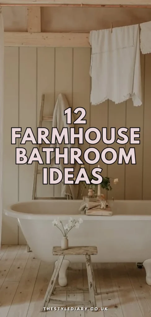 From a well-placed ladder for towels to wood accents, vintage-inspired fixtures, and storage that doesn’t scream “storage,” these ideas prove farmhouse decor can be both cosy and practical.